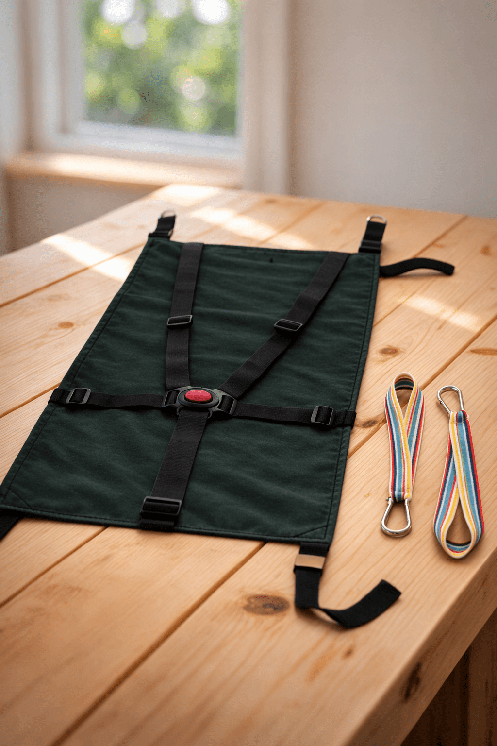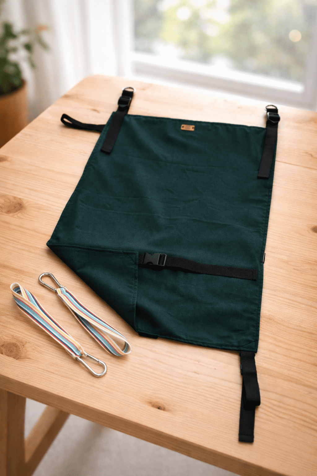 • Instalación fácil con mosquetones y cintas de anclaje